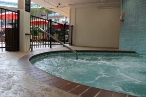 * A beautiful courtyard with luxery swimming pool, jacuzze, “hidden SPEAK EASY” game room
